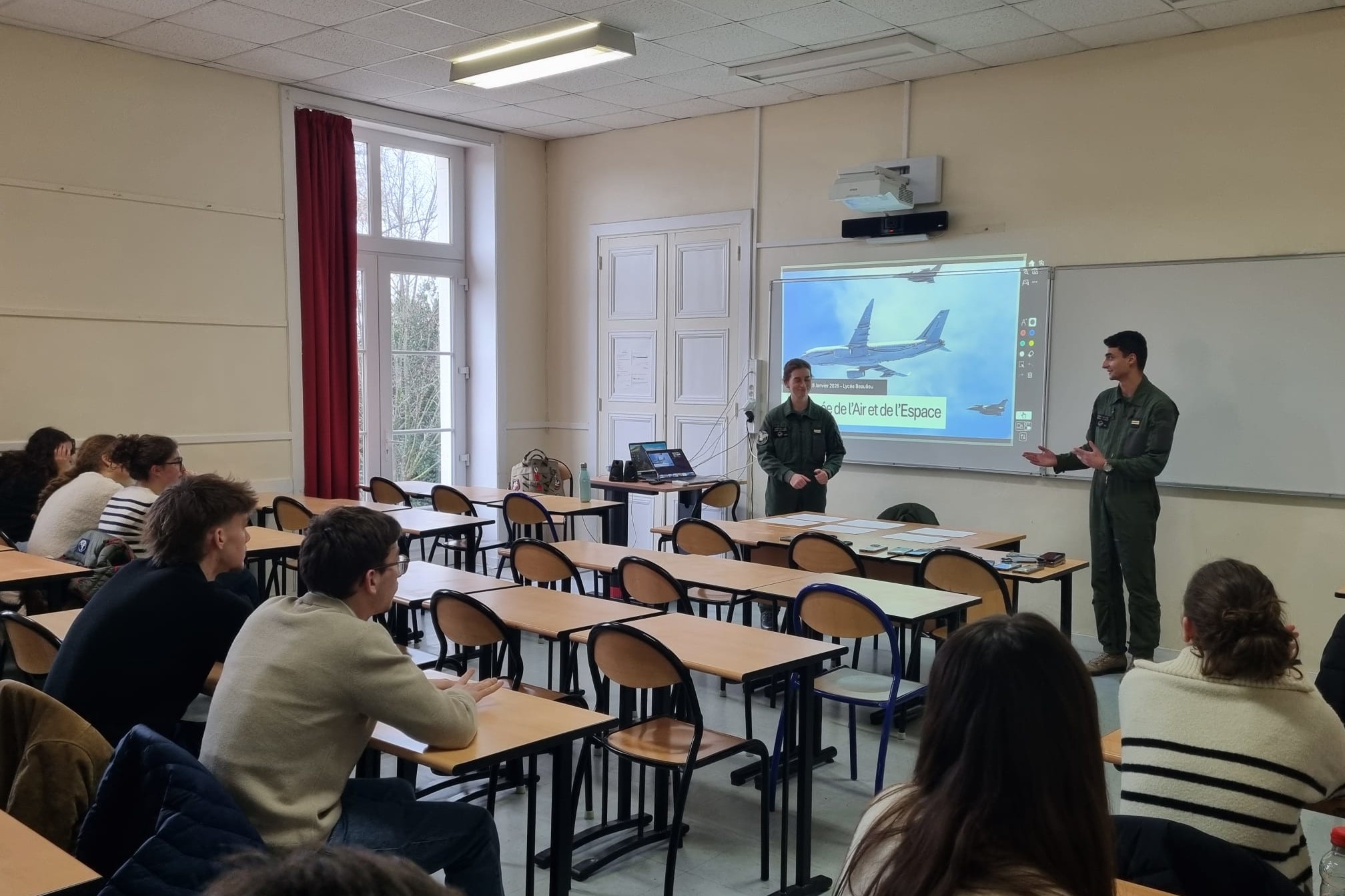 Intervention de deux jeunes élèves pilotes de la BA 709 de Cognac sur les missions…