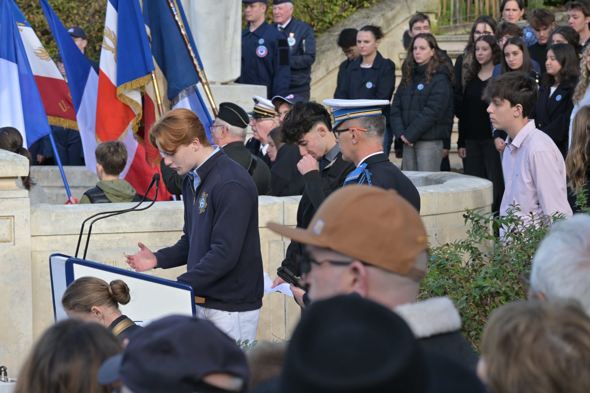 Un hommage vibrant marqué par la lecture du poème « La lettre » de Didier Venturini par Hippolyte et Romain, élèves de 1ère, et merci à Louis pour avoir porté fièrement le drapeau.