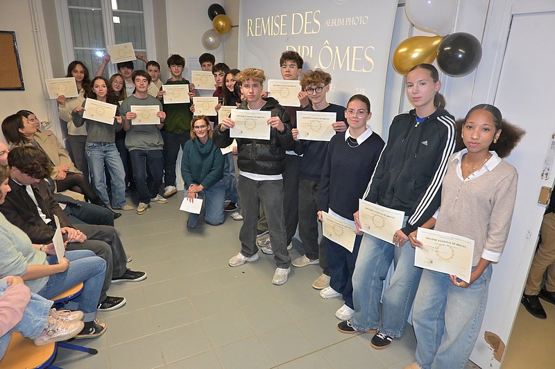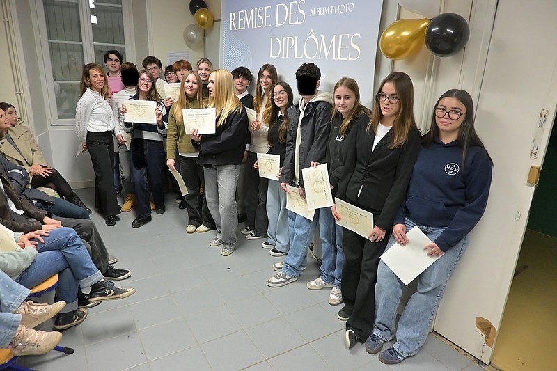 Devant leurs parents, Ils y ont reçu leur diplôme et les félicitations de Mme Desmarets, cheffe d’établissement.